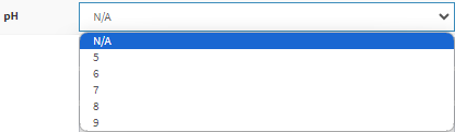 - Click on the PH drop-down menu to select the relevant result from measuring the acidity or alkalinity of urine.