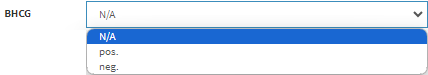 - Click on the BHCG drop-down menu to select the relevant result from measuring the presence of the hormone hCG in the urine.