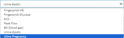 - Click on the Test drop-down menu and select Urnine Pregnancy.