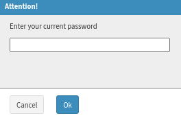 - An Attention pop-up will open asking the user to enter the user's current password. This is the password that the user uses when logging in to the system.