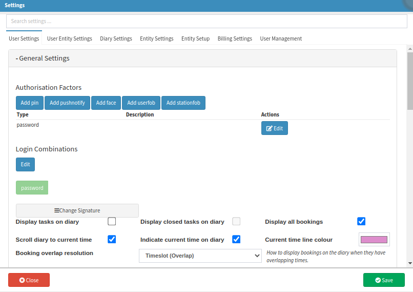 Please Note: Before a Login Combination can be set up, the user is required to have more than one Authorisation Factor set up. For more information, please refer to the user manual: Authorisation Factors.