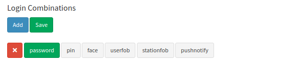 A Login Combination always consists of a username and password with additional Authorisation Factors within GoodX Web App; such as the pin, pushnotify (push notifications), face (facial recognition), and keyfob factors.