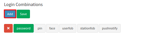 - The login combination is then saved and the selected authorisation factors will display as a light green colour, indicating that the authorisation factors are saved as a login combination.