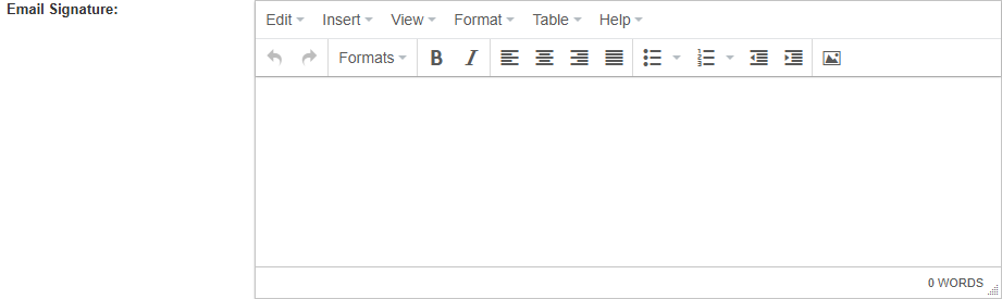 Scroll down the panel to the Email Signature field, then use the toolbar to create your signature or copy and paste your preferred details into the text field for personalisation.