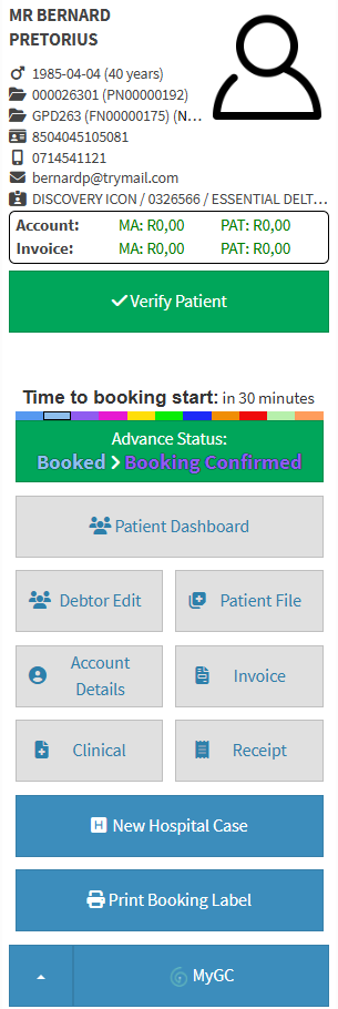 • Acc Nr: The account number, used internally by the Practice or Medical Aid.
