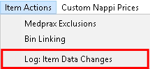 - Click on Log; Item Data Changes from the sub-menu.