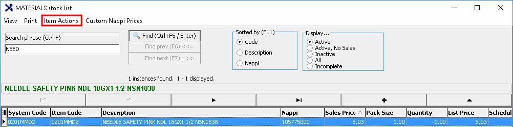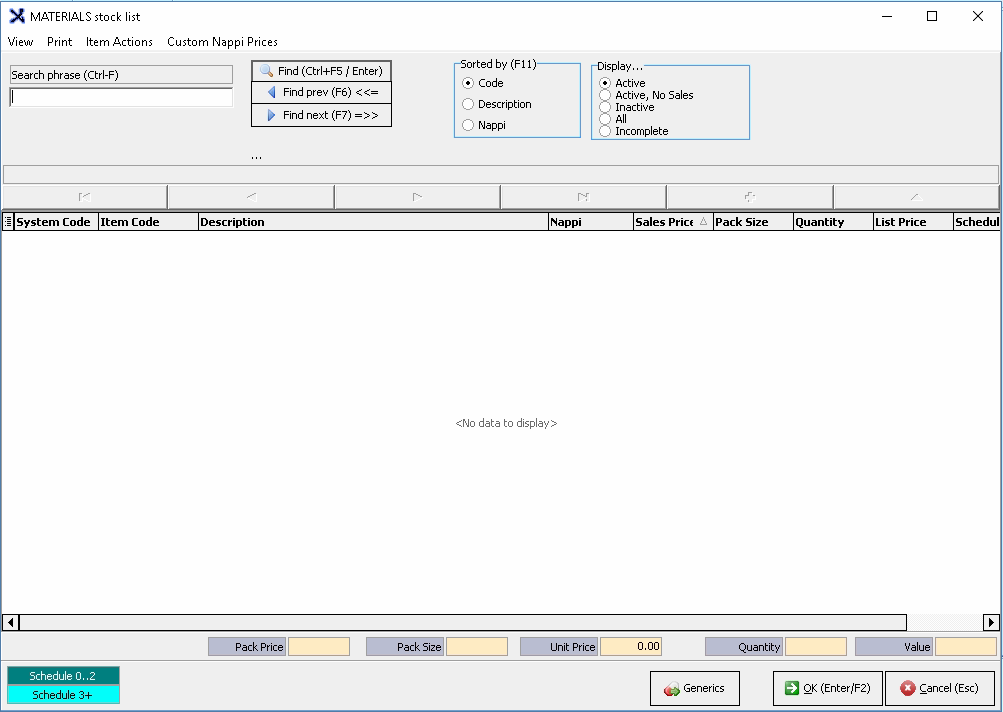 - Click on the Search phrase field and type in the stock item description or Nappi code.
