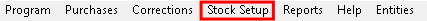 - Click on Stock Setup from the menu bar.