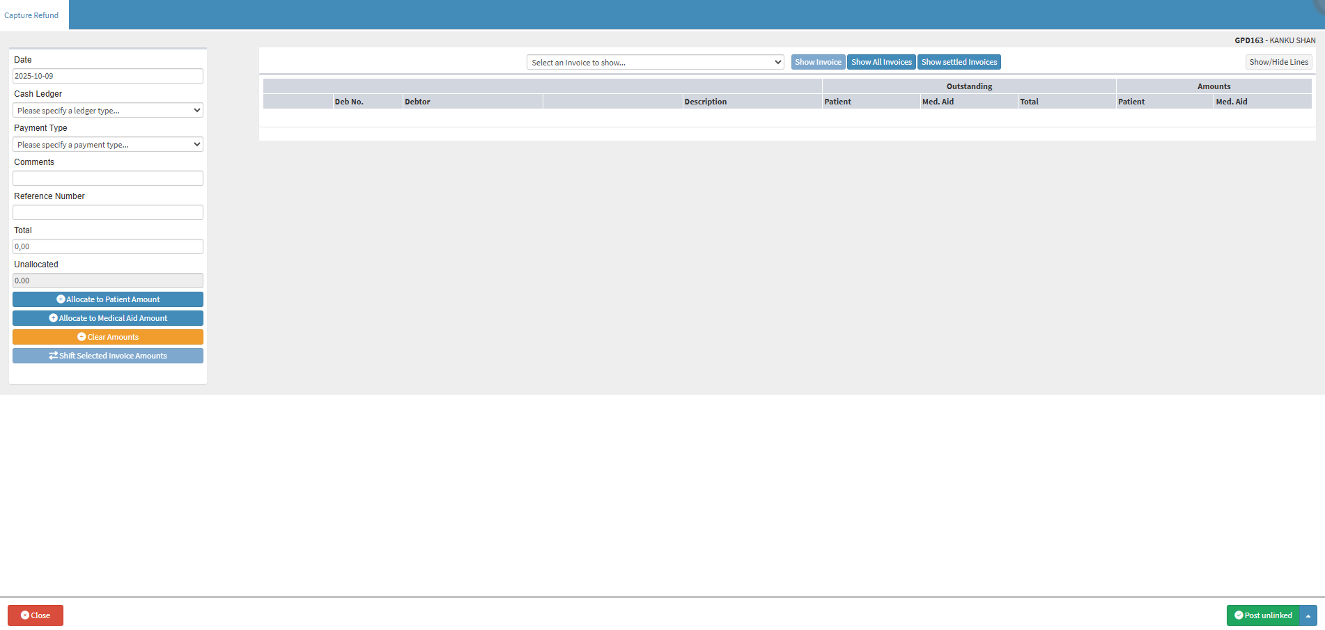 - Type in the Amounts that you would like to allocate in the relevant Pat.Amount/MA Amount fields that correspond with the Refund amount.