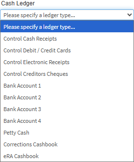 - Click on the Cash Ledger drop-down menu to select the Ledger from which the funds will be allocated.