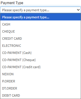 - Click on the Payment Type drop-down menu to select the method used for the payment.
