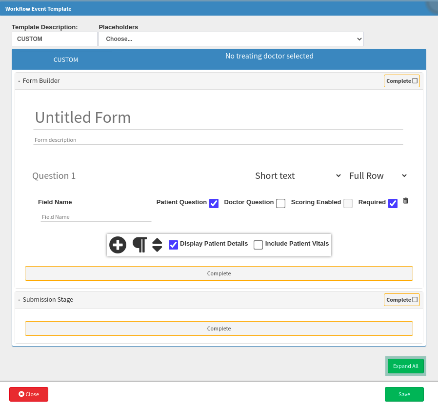 - Click on the Close button to return to the Custom Form without saving any changes.
