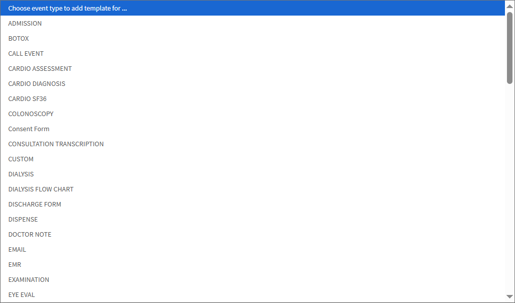 - Click on the Choose Event Type to Add Template... drop-down menu to expand.