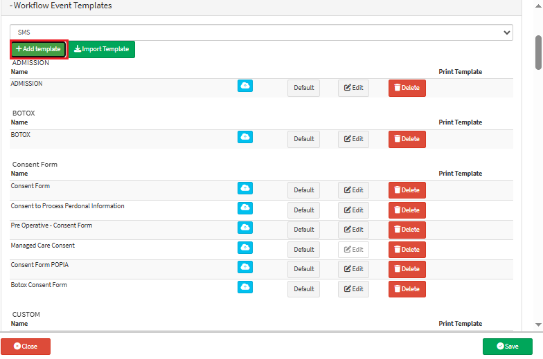 SMS Workflow Event Templates are pre-configured messages that you are able to send to Debtors and Patients. These templates are designed to streamline repetitive tasks, such as sending appointment reminders, payment notifications, follow-ups, or health-related alerts, saving time and reducing the risk of human error.