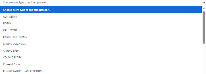- Click on the Choose Event Type to Add Template for drop-down menu to expand.