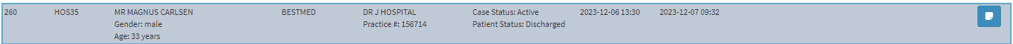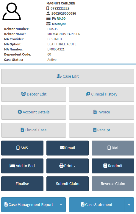 - Select the Case whose claim needs to be submitted to the Medical Aid.