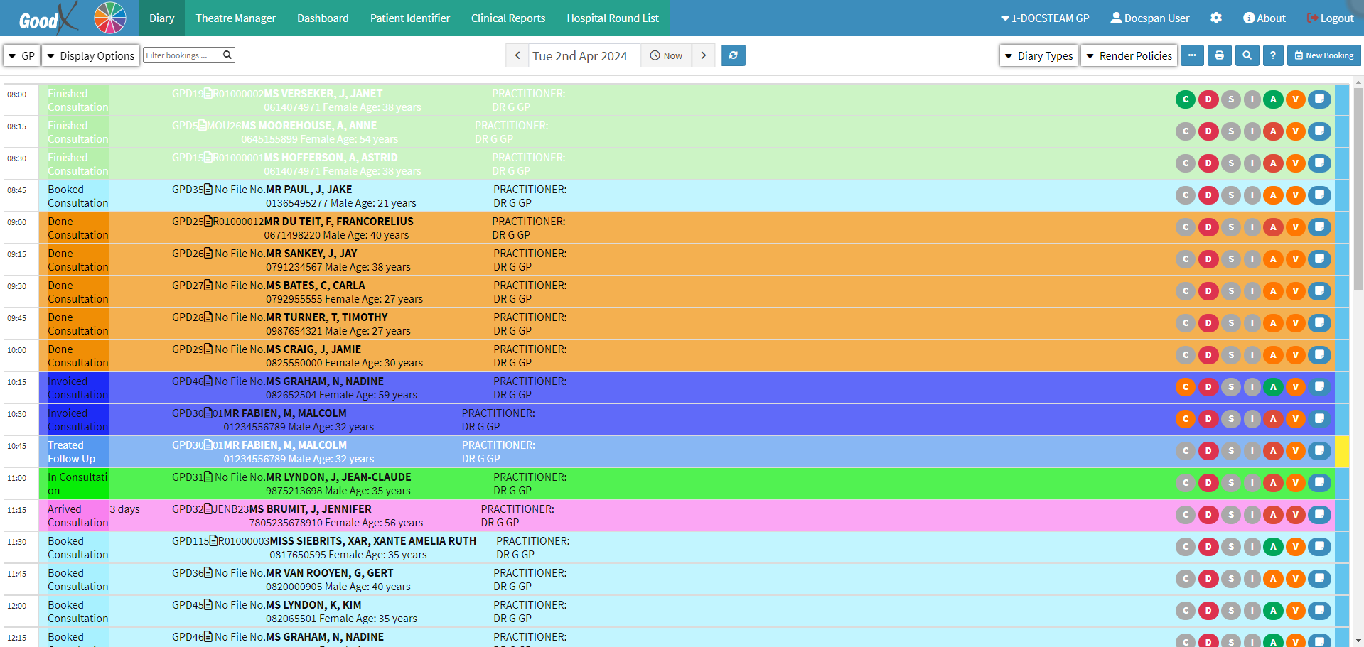 The form that you would like to be completed is sent to the Patient.- Click on the booking of the desired Patient.