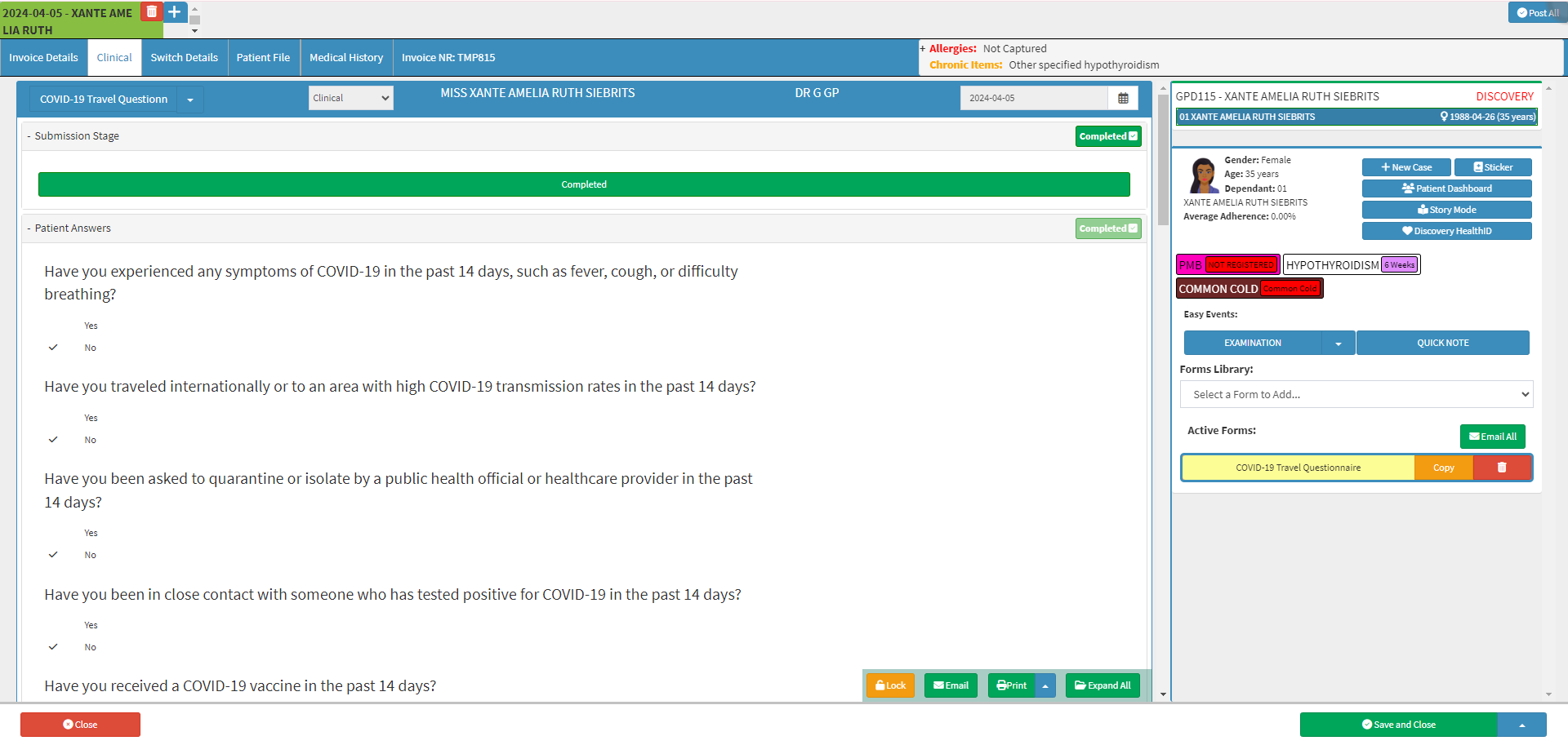 - The Clinical Case screen will open on the Custom form with all the Patients' answers.