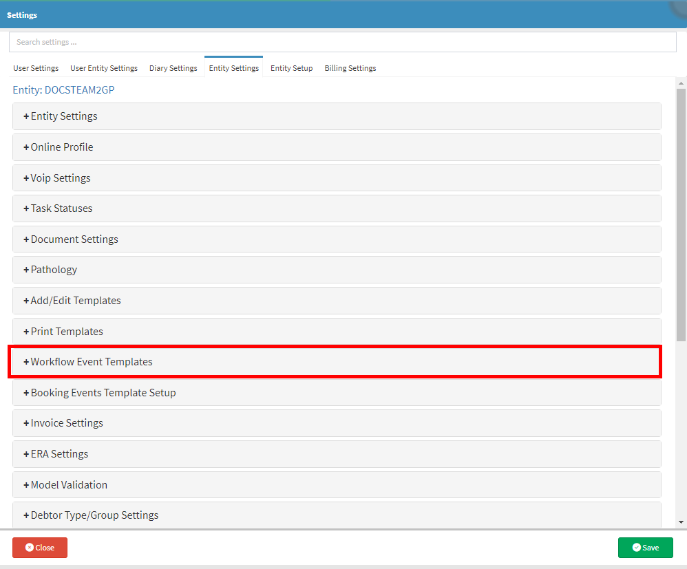 - The Letter that was set up will appear on the Workflow Event Template list.