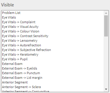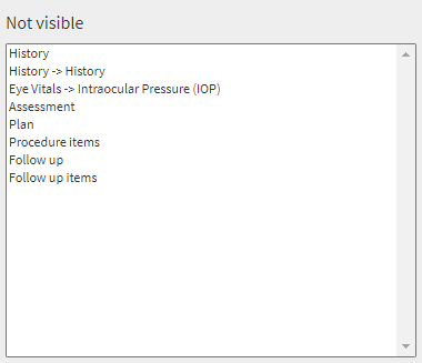 - The fields of the form that have been selected will populate into the Visible section of the Choose Paths to Omit From Print screen.