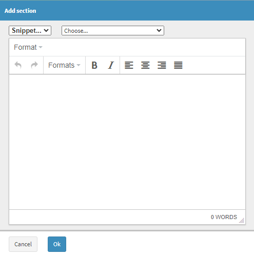 - The Add Section screen will open where you can build the Postamble section of your Letter.