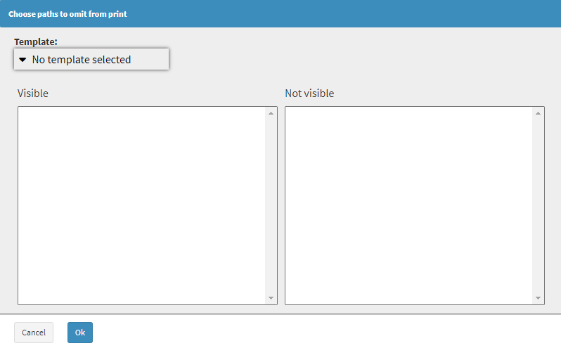 - The selected field will be added to the Not Visible section of the Choose Paths to Omit From Print screen.