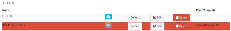Please Note: The Template has not been saved as yet and has been highlighted in red. The Template will first need to be Saved.