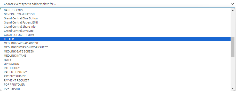 - Click on the Choose Event Type to Add Template for... drop-down menu.