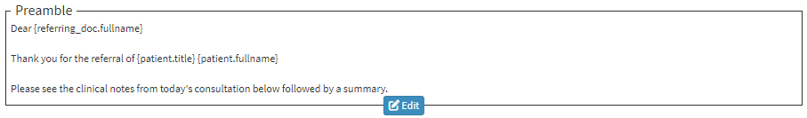 The Postamble section follows the main body of the Letter, summarising key points and often expressing gratitude and to contact the referring Practitioner should they need more information.