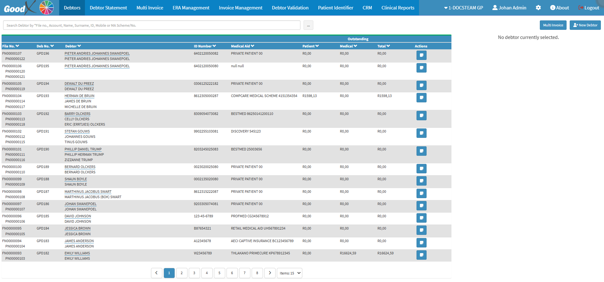 - Click on the desired Debtor.