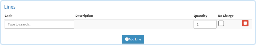 - Click on the Add Line button to insert a new Billing Code into the form.