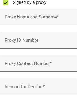 - Click on the Proxy ID Number field to decline the form through proxy.