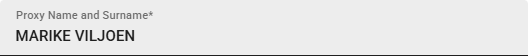 - Click on the Proxy Name and Surname field to enter your Name and Surname.
