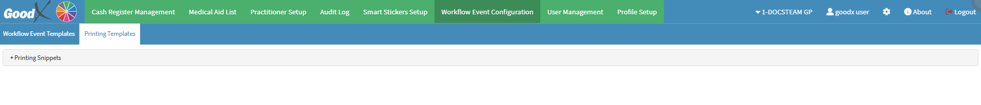 - For more information on how to navigate to the Printing Template screen, please refer to the user manual: Workflow Event Configuration: Navigation and Use.