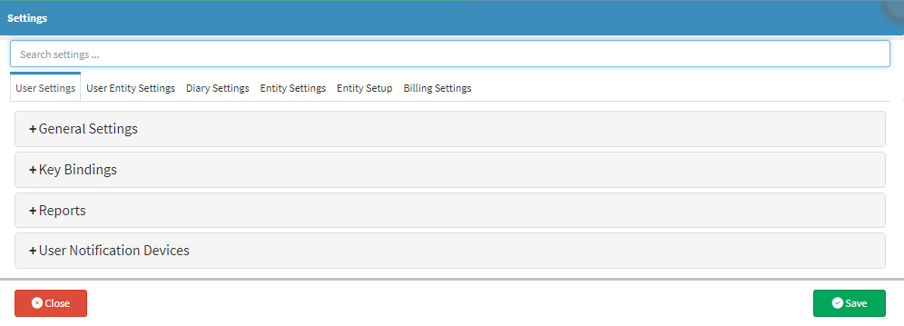 Set per User per Entity to customise the program to the specific needs of the Practice. The User Entity Settings will determine how functions are set up and work or are displayed per User in the Entity. If a User wants to set up Custom Settings that are unique to their User, they can log in with their User credentials and change the User Entity Settings accordingly. The Settings will only change for the specific User and not all the Users.