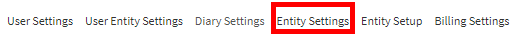 - Click on the Entity Settings tab.