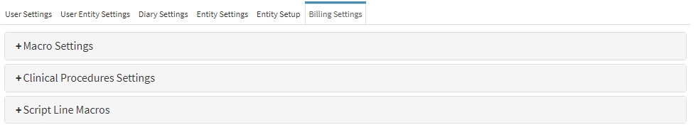 Configured per Entity to tailor the system to the specific needs of the Practice. These settings are designed to streamline the billing process by enabling the use of preconfigured Macros, Clinical Procedures, and Script Macros, making the billing experience faster, more efficient, and user-friendly.