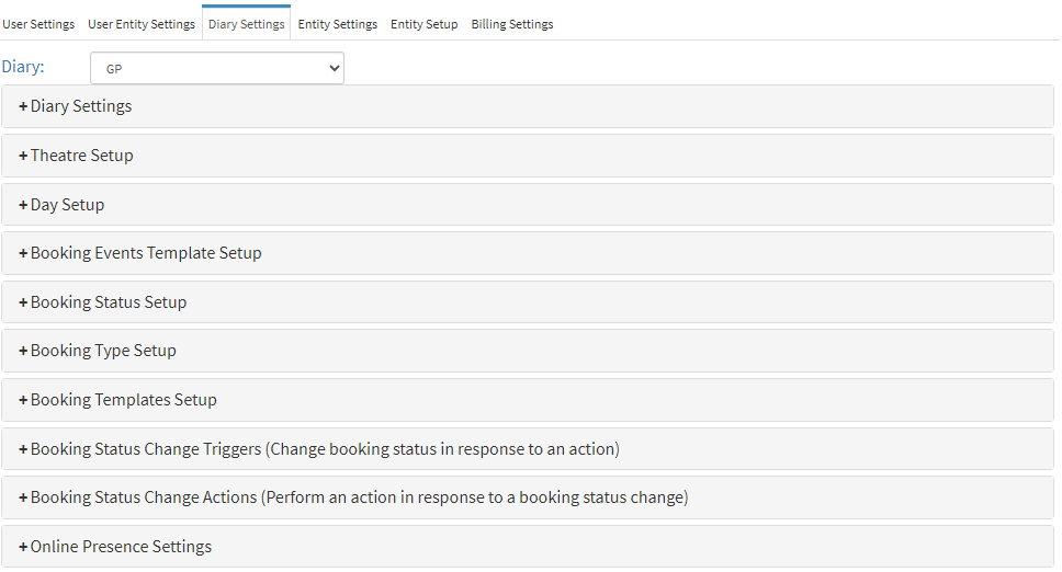 ?Please Note: Diary Settings will need to be set up for each Diary used at the Practice.