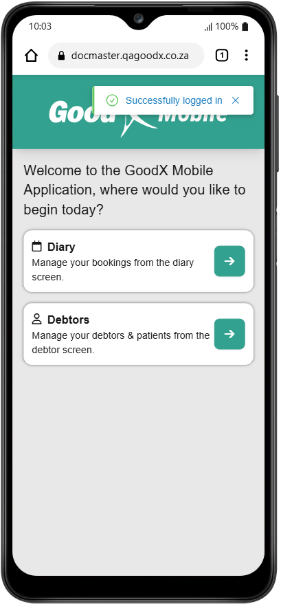 Logging into the mobile version of the system ensures that a Practitioner remains connected to the Practice even while away from a desktop. Mobile accessibility facilitates seamless management of Patient and Debtor information in real-time, whether working online or in an offline capacity. Mobile connectivity empowers you to provide efficient care and maintain up-to-date records from any location using your existing credentials.