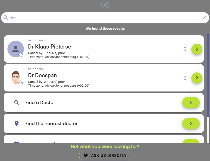 - Click on the Ask Us Directly button if none of the suggested results match your needs.