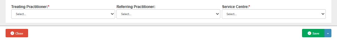 - Treating Practitioner: Select the Practitioner responsible for the Patient’s care from the drop-down. This is a required field and will default to the Debtor Setup. A warning dialogue will appear if not completed.