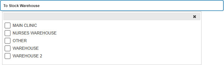 - Click on the To Stock Warehouse drop-down field to select the stock warehouse you want to move the Stock to.