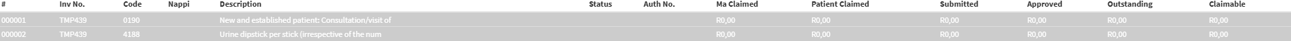 - Claimable: The amount that can still be claimed from the Medical Aid for this line item