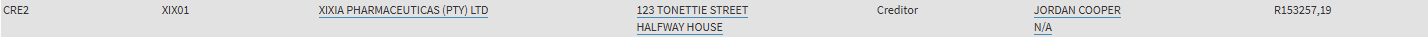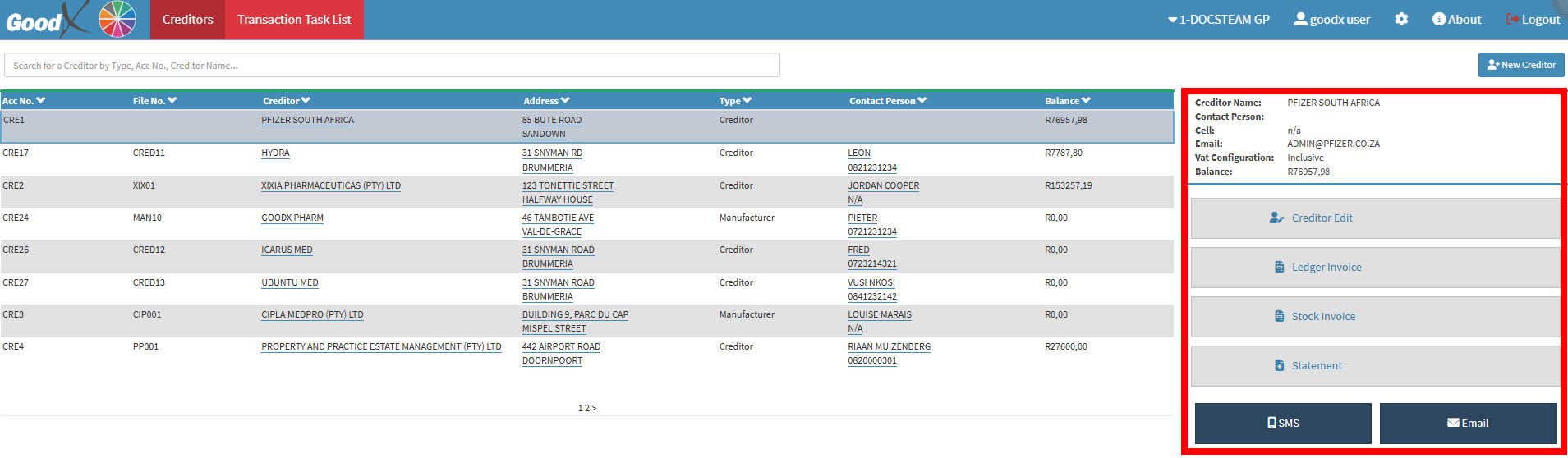 - For more information on how to navigate to the Creditors screen, please refer to the user manual: Creditors Segment.
