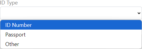• Click/Tap on the ID Type drop-down menu to select the relevant option.