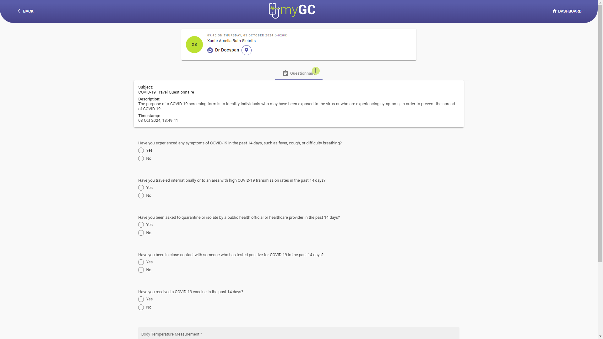 Questionnaires on myGC provide Practitioners with any additional details required before a consultation, eliminating the need for physical forms.