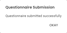 - A Notification will appear stating that the Questionnaire has been submitted successfully.