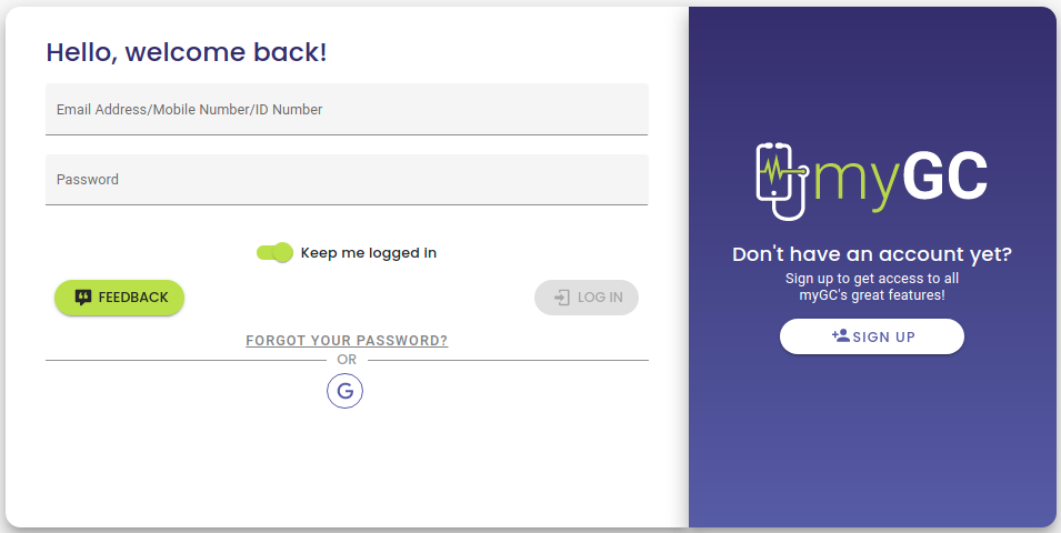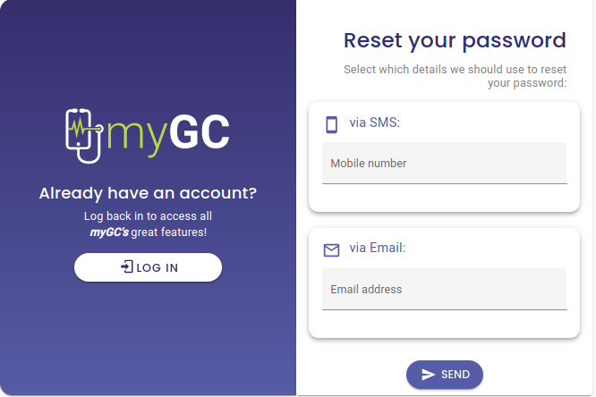 The user will be redirected back to the myGC Landing Page and they are then able to use the new password to Log in.