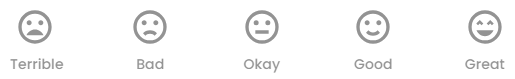 Patients can select a Rating icon that best represents their experience using the Kiosk. The Rating icons range from Terrible to Great, helping to quantify the overall satisfaction level of the Patient’s experience.