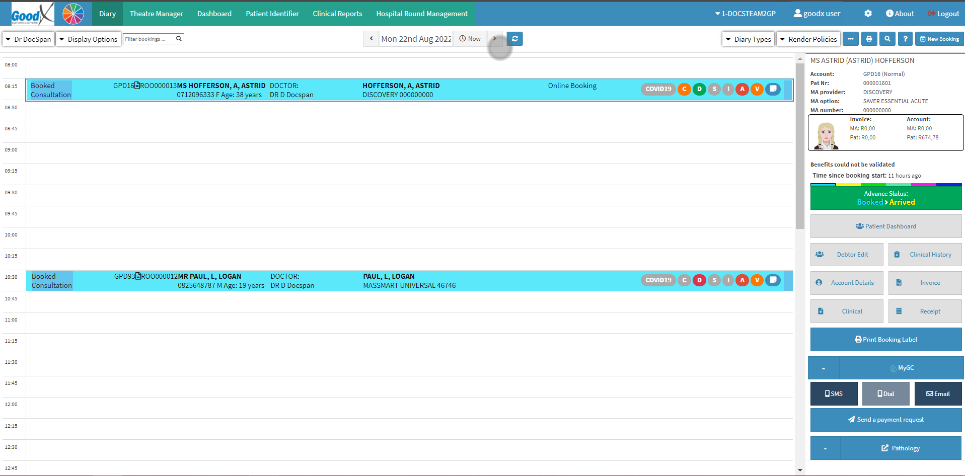 • The patient's landing page will appear on the HealthID, and the patient's details initially accessed from GoodX.